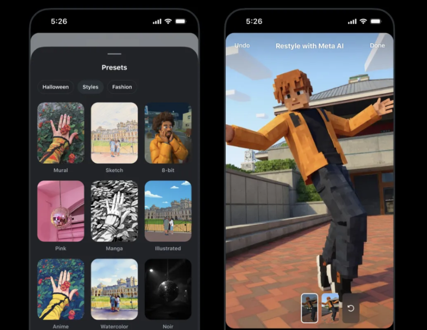 This new version of the Restyle tool offers a prompt box that allows users to tell Meta AI what kind of edit they would like to do on their chosen images and videos.