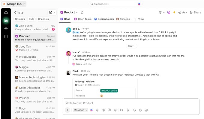 “Eight years ago, when we started, the vision and the strategy were to replace all of your work software. The strategy to do that was to build a flexible data models platform that can be used essentially for anything, and build primitives of software like a spreadsheet, a table, a document, and a task,” ClickUp CEO Zeb Evans told TechCrunch over a call. “In the age of AI, they’re needed to an even greater extent because you can’t really visualize things in AI within a chat interface.”
