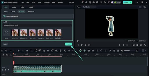 Every cutout remains precise and smooth, saving hours of manual editing. Smart Cutout offers various cutout modes, turning simple clips into striking visuals. It helps creators blend subjects and backgrounds for a clean, professional result.