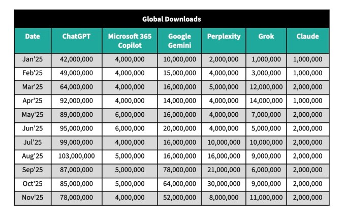 But ChatGPT saw its share of global monthly active users drop three percentage points over the past four months (August-November 2025), by comparison.