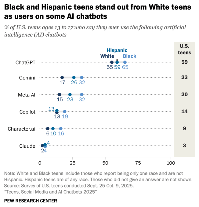 Pew’s research also details how race, age, and class impact teen chatbot use.