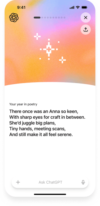 While the year-end wrap-up will be promoted on the ChatGPT app’s home screen, it won’t be forced on users or opened automatically.