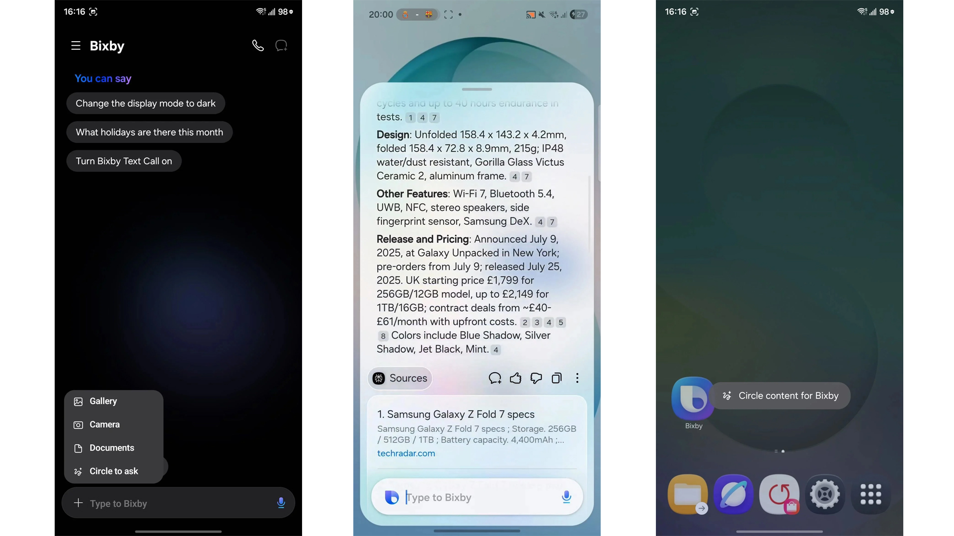 There's also the option to upload documents to discuss in Bixby, while there's a Circle to Ask feature. Bixby Live will duplicate the functions of Gemini Live, allowing real-time conversation, camera sharing and screen sharing.