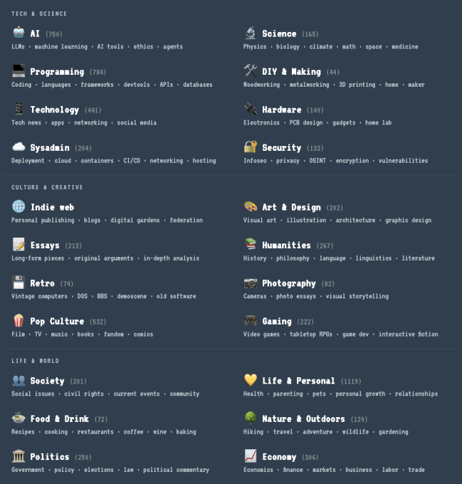These are the types of properties that formed the basis of the early web, before it became dominated by ad-supported business models and platforms controlled by large corporations. They’re also increasingly the kind of sites that can be harder to discover on today’s web, where so much content is infused with, if not directly authored by, AI.