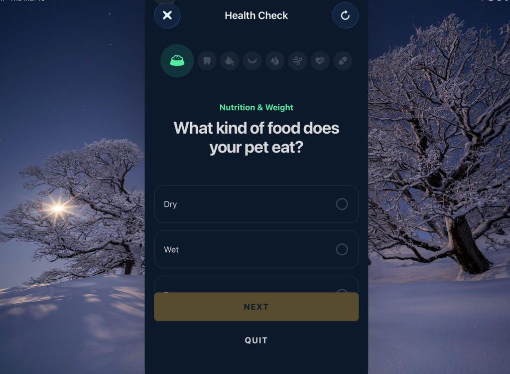 The check-in choices are basic and often limited -- there's an option for your pet eating twice a day or free feeding, but no option for three times a day, for example -- but they can serve to throw up any big red flags. The feature where you send a photo of your pet's profile for automatic analysis of weight gain is particularly cool.