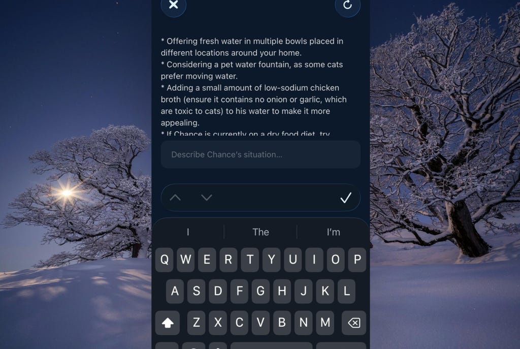 I tried a few basic scenarios for the AI and found it helpful to get some quick advice. I'm not sure what chatbot powers the assistant behind the scenes, but it's nearly the same summaries you would get from typing issues or symptoms into ChatGPT, albeit with more direct knowledge about your pet from the app. This certainly saves time, but the connection to a vet-assist chat is probably more helpful if you have any direct concerns.