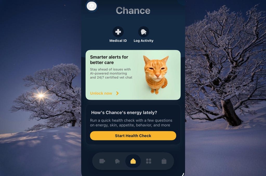I've seen both AI and health tracking in new pet apps this year, but this Petcube hub is one of the easiest to get started without needing a collar, feeding station or other accoutrements. It allows pet owners to create a profile and input information on walks, food, medical records, treatments and any other key moments. That's just the beginning.