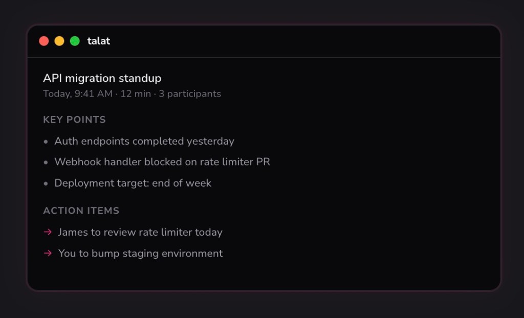 The AI-powered notetaking app Granola, valued at $250 million, has become a popular tool among tech industry founders and VCs. But one developer believes there’s demand for a more private, local-only alternative that’s available for a one-time fee and without a subscription. That’s led to the creation of a new Mac app called Talat.