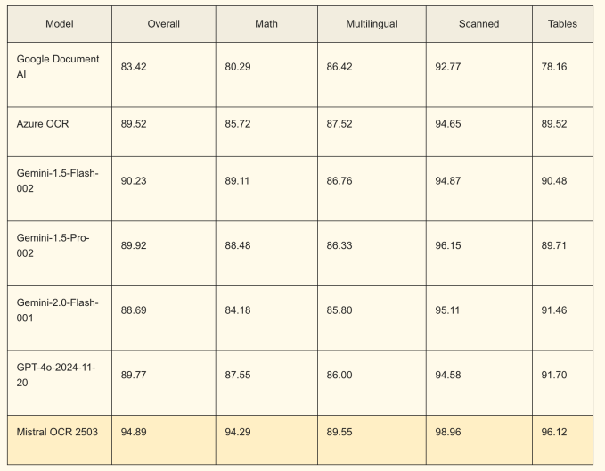 According to the Paris-based AI company, Mistral OCR performs better than APIs from Google, Microsoft and OpenAI. The company has tested its OCR model with complex documents that include mathematical expressions (LaTeX formatting), advanced layouts, or tables. It is also supposed to perform better with non-English documents.