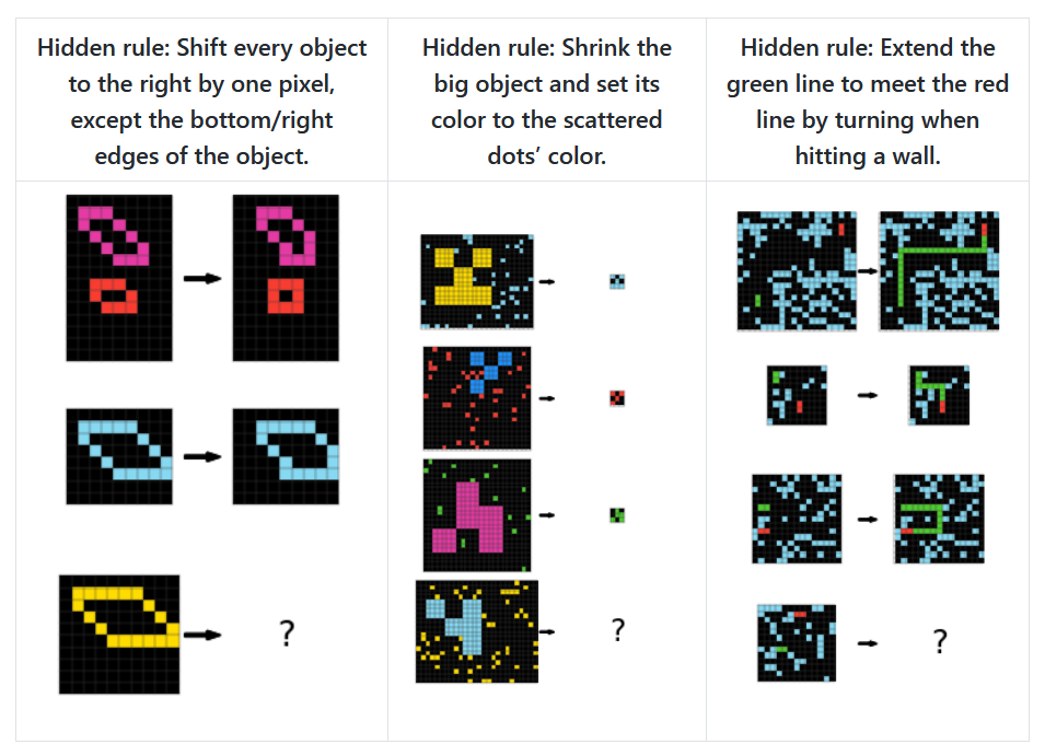 The pair tested their approach on the Abstraction and Reasoning Corpus (ARC-AGI), an unbeaten visual benchmark created in 2019 by machine learning researcher François Chollet to test AI systems' abstract reasoning skills. ARC presents systems with grid-based image puzzles where each provides several examples demonstrating an underlying rule, and the system must infer that rule to apply it to a new example.