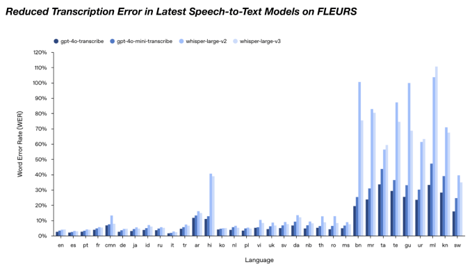According to OpenAI’s internal benchmarks, gpt-4o-transcribe, the more accurate of the two transcription models, has a “word error rate” approaching 30% for Indic and Dravidian languages like Tamil, Telugu, Malayalam, and Kannada. That means that the model misses around three out of every 10 words in those languages.