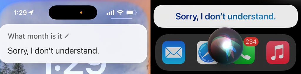 Even more unusual is that the problem isn't just with Future Siri. The current version of Apple's assistant seems to be regressing. According to a Reddit thread (and reported by Daring Fireball and MacRumors), asking Siri "What month is it?" results in "I don't understand." I got the same response using both Siri under iOS 18.3.2 and the new, glowing Apple Intelligence-powered Siri in the latest iOS 18.4 beta.