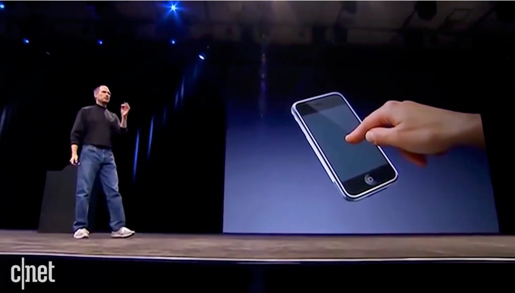 When Steve Jobs revealed the original iPhone, it was a radical idea to not include a physical keyboard. CNET / Screenshot by Jeff Carlson