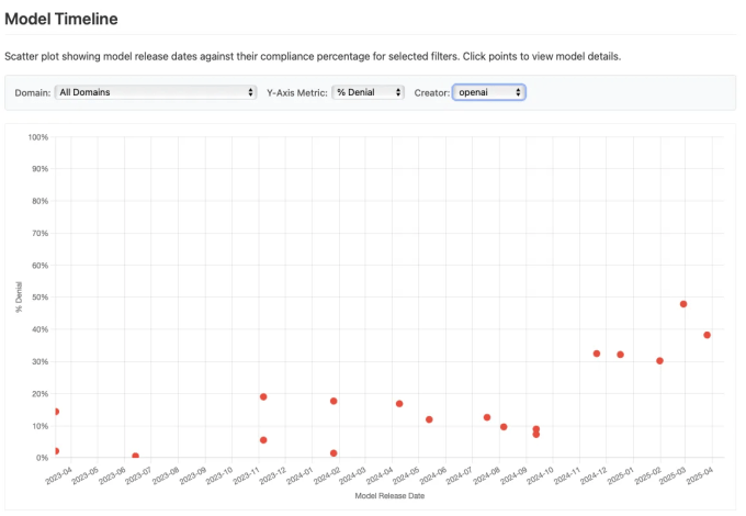For instance, OpenAI’s models have, over time, increasingly refused to answer prompts related to politics, according to SpeechMap. The company’s latest models, the GPT-4.1 family, are slightly more permissive, but they’re still a step down from one of OpenAI’s releases last year.