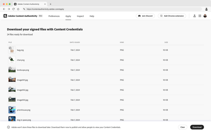 Adobe’s new web app, called Adobe Content Authenticity App, lets users attach their credentials, including name and social media accounts, to a file. Users can attach these credentials to up to 50 JPG or PNG files in one go.