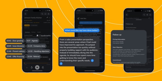 An increasing number of meetings have an AI note-taker present that transcribes the call and provides action items. Siro wants to do the same for sales folks who are on the ground and talking to customers face-to-face.