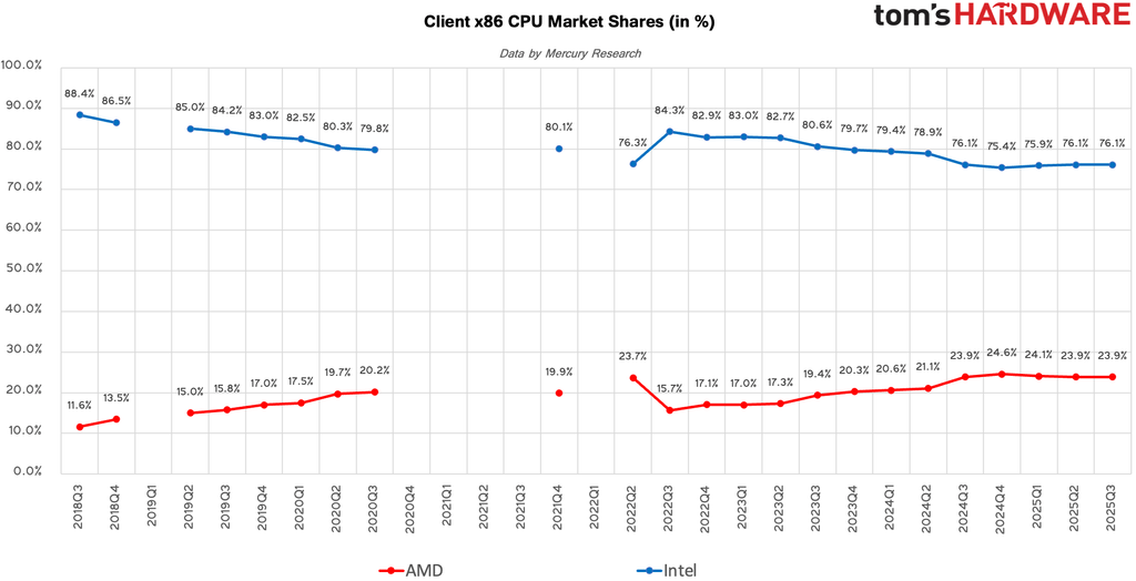 (Image credit: Data by Mercury Research, Compiled by Tom's Hardware)