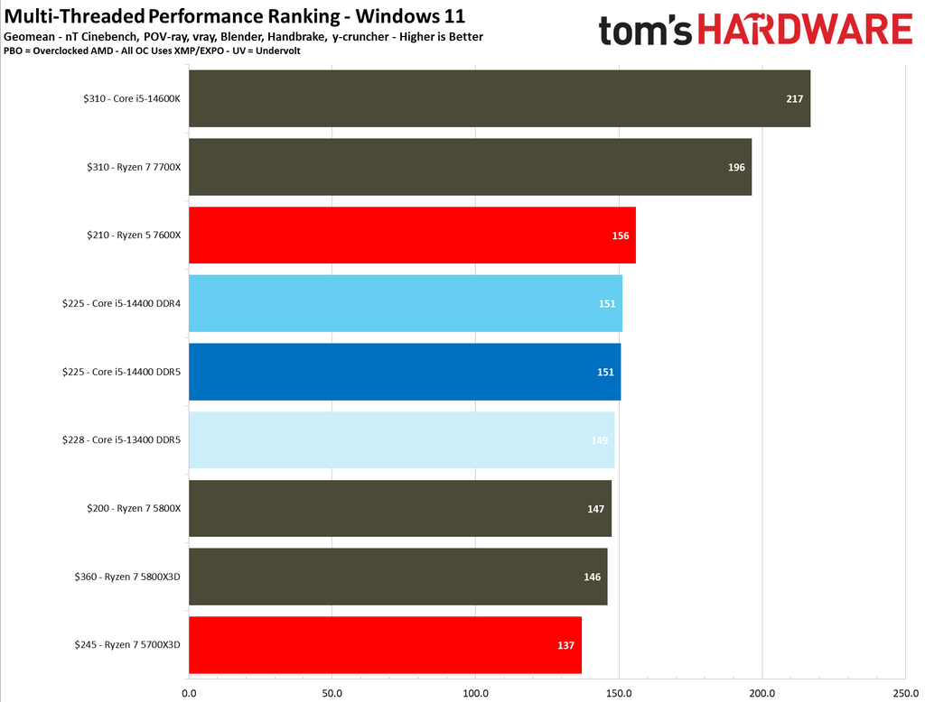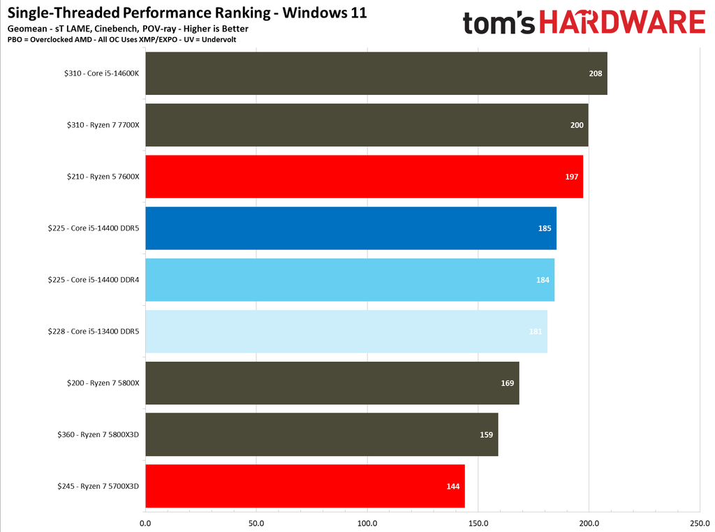 The newer Core i5-14400 (or its F-series variant) is within a point or two of the Core i5-13400F, depending on the benchmark you look at, and that’s true across both games and productivity applications. The Raptor Lake Refresh chip is available for around $180 to $220, and that extra cost buys you… basically nothing. Go for the Core i5-13400F if you can find it in stock, but worst-case scenario, you’ll spend an extra $20 or so for the Core i5-14400.