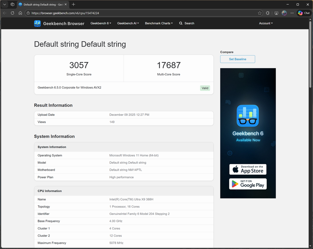 The Core Ultra X9 388H got 3,057 points in the single-core test and 17,687 points in the multi-core test, both figures that put it way ahead of the Arrow Lake-H Core Ultra 9 285H, but also on par with the beefier Core Ultra 9 275HX.