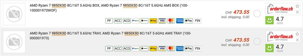 The CPU was spotted at SHI, an American retailer that listed it for $553.09, and a Swedish retailer called Ordeflow.ch, which put it up for 473.55 CFH (in a now deleted post), which comes out to around $595 USD. Those are clearly very high numbers, especially when you compare them to the $479 MSRP that the 9800X3D launched at. Searching the part numbers mentioned on SHI's listing doesn't bring up any further details either.