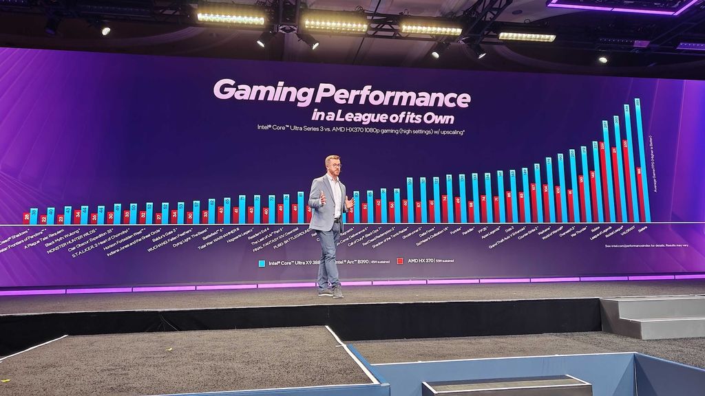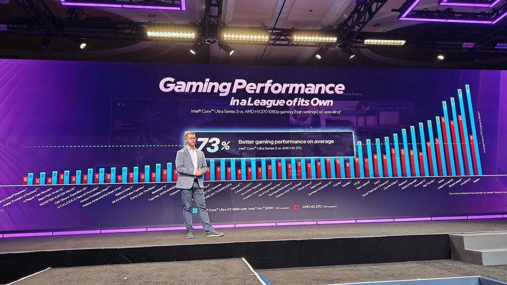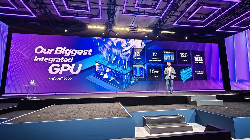 Intel Arc B390 iGP announced. Intel claims it is 2X as fast as AMD in "select titles" and 73% faster on average. They're calling this a "discrete-class gaming performance" in a laptop. That could be the case if the B390 is actually as powerful as they suggest, though I suspect we're still looking at 1080p, medium settings, and plenty of help from XeSS.