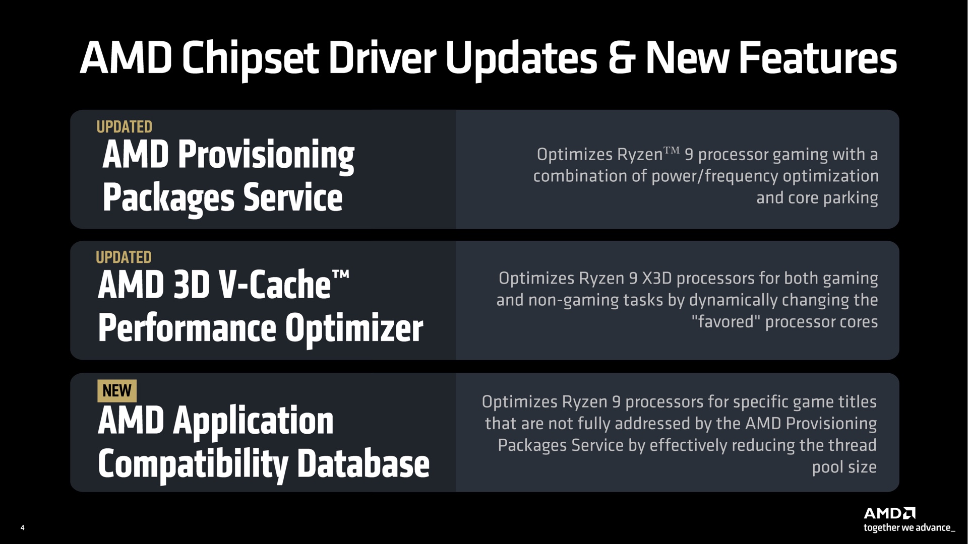 And for situations where AMD's drivers can't automatically send the right workloads to the right kinds of cores, AMD also maintains a compatibility database of applications that need special treatment to take advantage of the 3D V-Cache in the 9900X3D and 9950X3D. AMD says it has added a handful of games to that list for the 9900/9950X3D launch, including Far Cry 6, Deus Ex: Mankind Divided, and a couple of Total War games, among others.