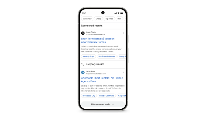 Plus, Google says that the “Sponsored results” header can appear both above and below AI Overviews — the short AI-written summaries that appear at the top of search results to provide quick answers. The “Sponsored results” header for text ads will also appear at the bottom of the page, with all text ads grouped under the label. These can be collapsed with the same “Hide sponsored results” button if you want to focus on organic content.