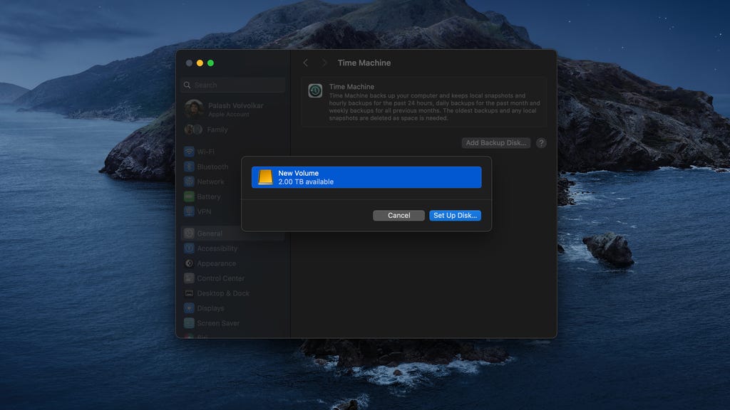 - Once opened, you'll get a setup prompt. Click Set Up Time Machine. This option can also be found in the Settings app under the General tab.