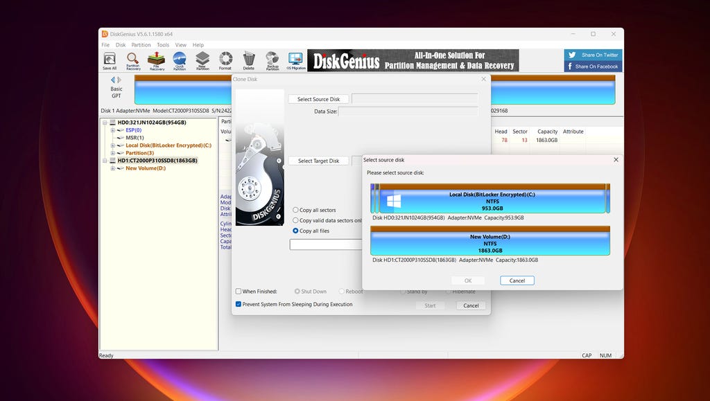 To clone a disk in DiskGenius on Windows, follow these steps: