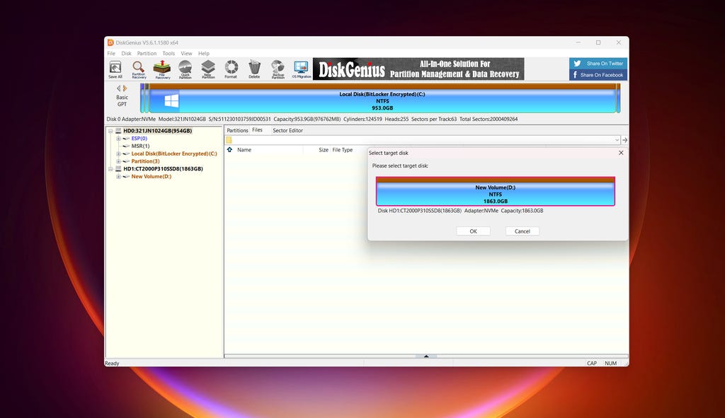 - In the new pop-up window, select the target SSD or HDD and click OK.