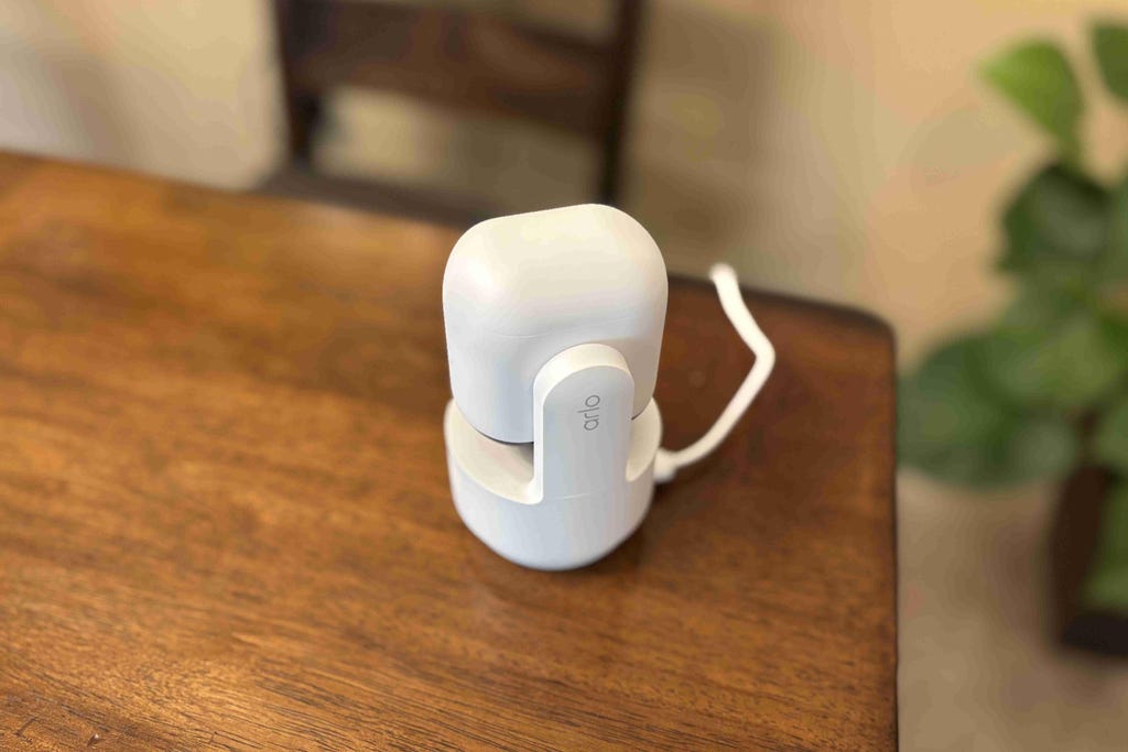 When not in use, Arlo's cam turns down to indicate a privacy mode in a surprisingly cute way. Tyler Lacoma/CNET