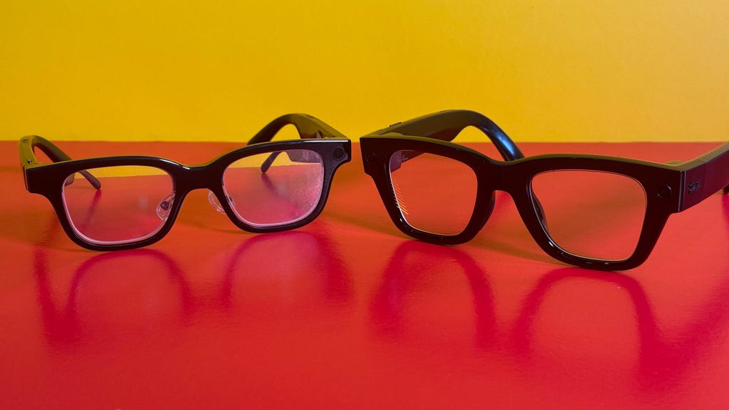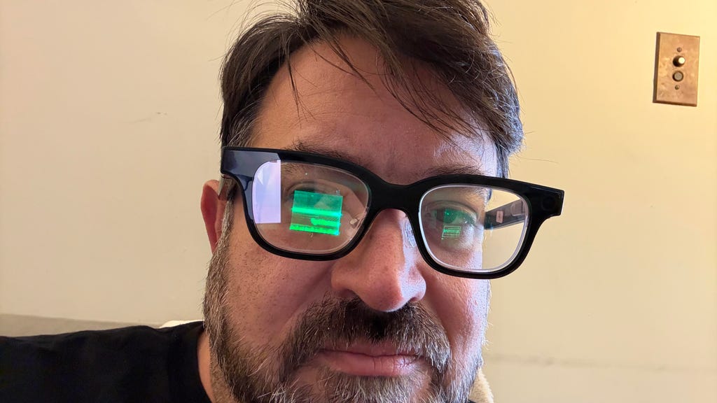 They're roughly the size of a regular pair of everyday glasses -- and smaller than the chunky Ray-Ban Displays -- but don't feel as polished as Meta's glasses in my tests so far. They use different types of AI, lens and display tech. They have dual monochromatic green micro-LED displays that pop up in both eyes like dialogue boxes, projected via reflective waveguides in the middle of each lens.
