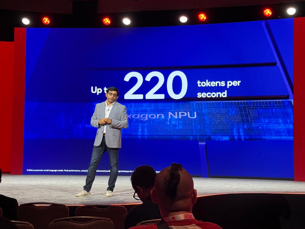"The difference between 150 tokens, which was last year, to 220 tokens this year has several seconds of latency," said Vinesh Sukumar, senior director of AI product management at Qualcomm. "Anything beyond a second impacts the human-machine interface. We believe that's not good, because at some point of time, the user loses interest."