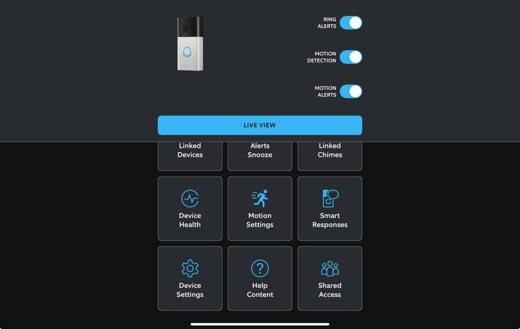 Open up your doorbell app and navigate to the Devices menu if necessary. Choose your doorbell device, and then find the settings button, which is usually a hamburger icon (three lines), a gear icon or three dots. In my screenshots, I'm using the Ring app, which does a good job of offering reply settings, but you should be able to find similar settings in most doorbell apps.