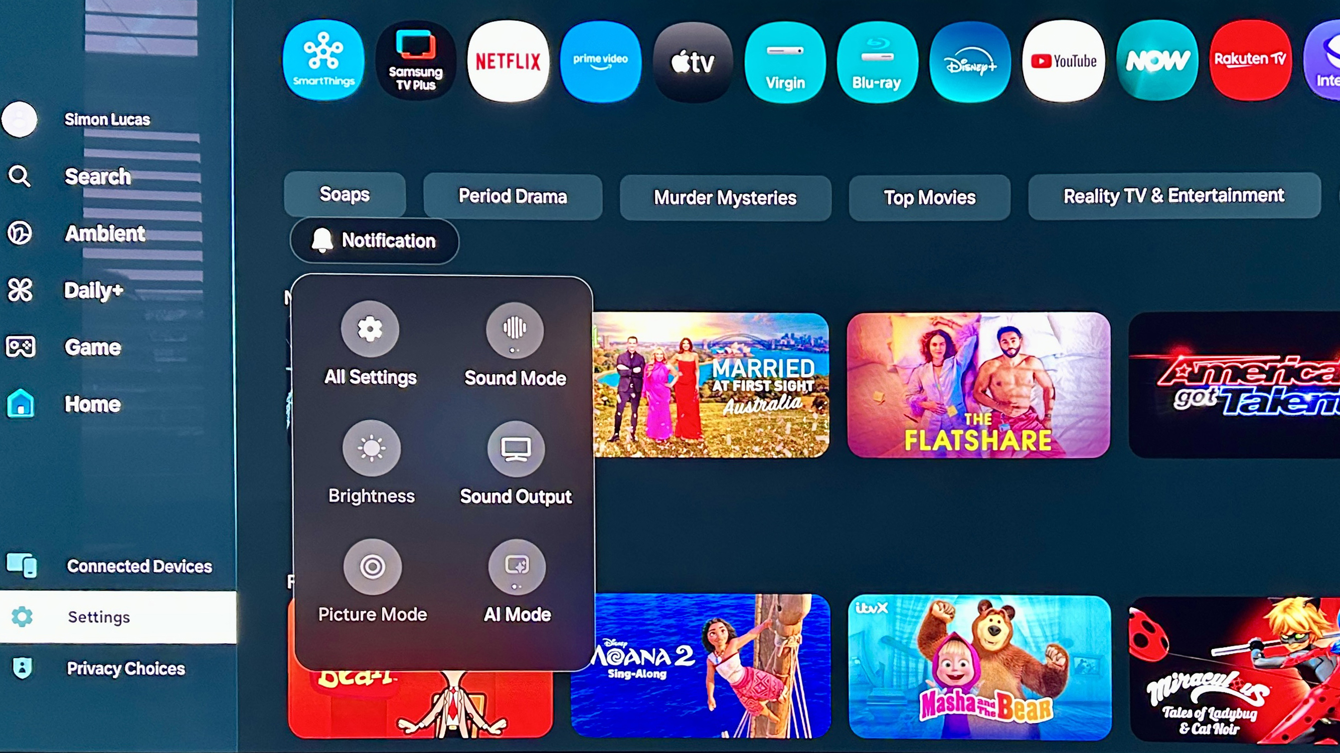 In addition to all the usual streamers, you also get Samsung TV+, the brand’s own free-to-watch Internet TV channel bouquet. There’s voice interaction if you want it, via Alexa (or Samsung’s own Bixby), as well as some nice novelties, including a Notes widget you can pin to the screen, to pass messages to friends and family.