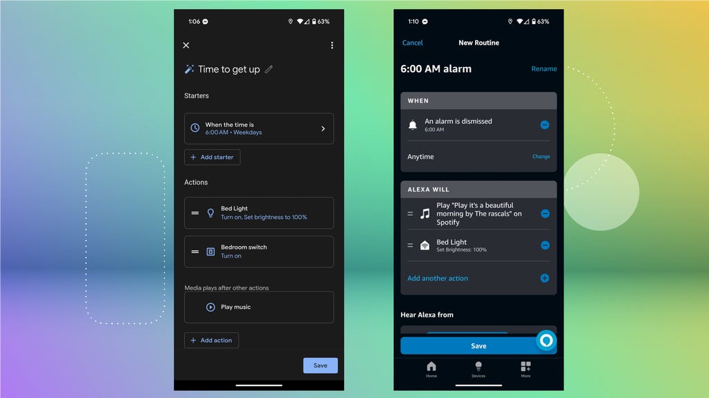 Creating an alarm on your smart speaker is common, whether you set it to wake you up in the morning or keep you on task during the day. For some, a standard alarm going off isn’t enough to get them out of bed. By leveraging the power of automation, you can fire up all the bells and whistles you want to get you up and going.