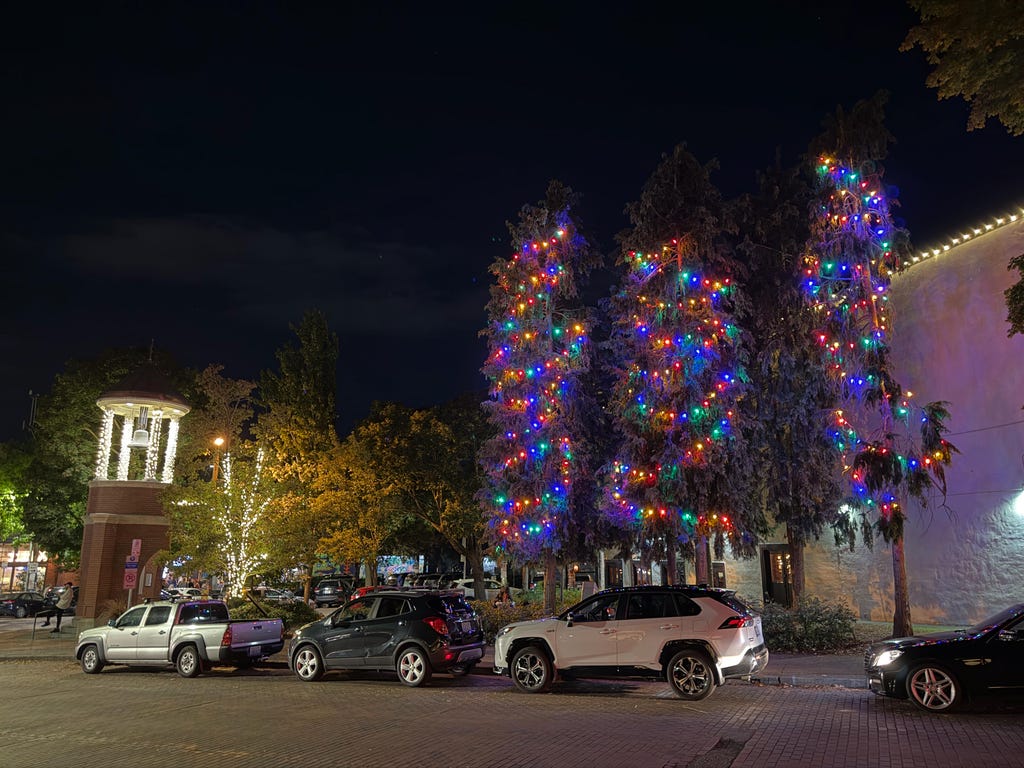 Is it too early for holiday lights? Not here. Although the photos are similar, zooming in reveals more resolution and detail in the Pixel 10 Pro XL photo. It's a little soft in details like the brick pattern on the bell tower. Both photos were captured using the main cameras, not the ultrawide, as you might think from the angle of the tower.