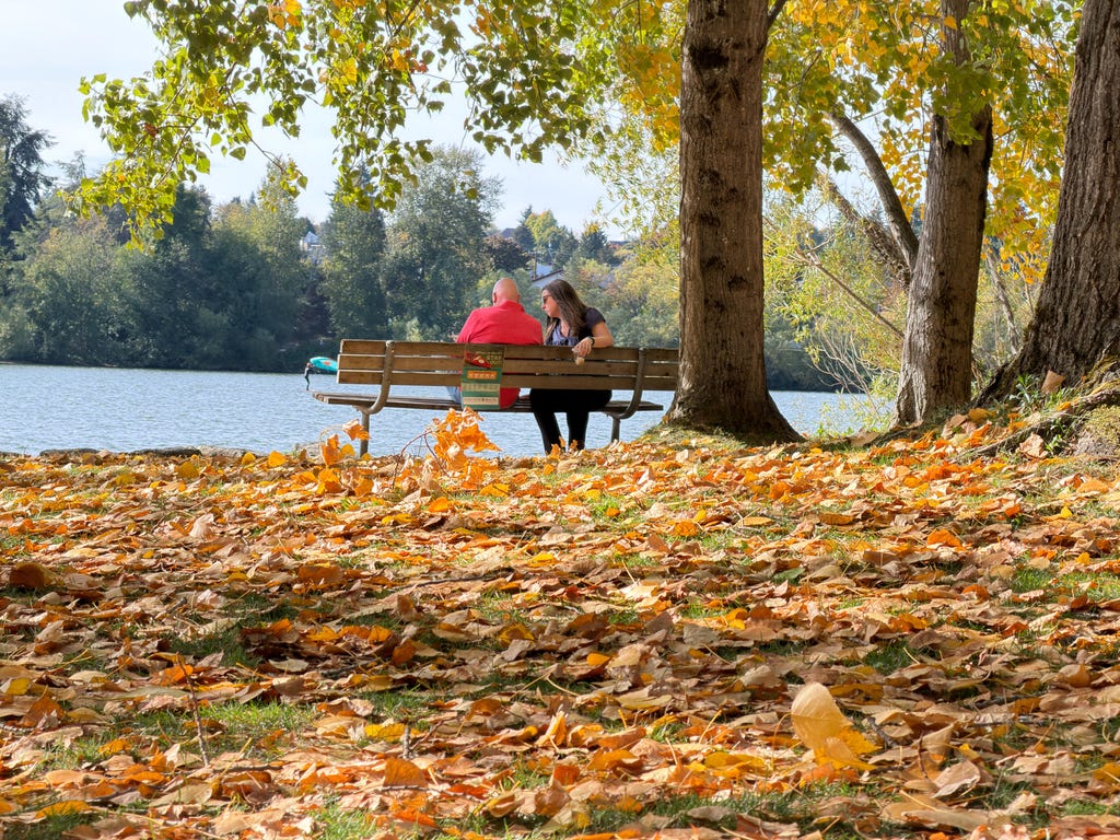 I promised we'd get back to this scene for a good reason. Standing in the same spot as the main camera image earlier, these use the 4x and 5x zoom levels of each camera. For a fall-color photo, I'm partial to the brighter, more saturated iPhone photo. The Pixel shot is also good, but slightly muted in comparison to tamp down the highlights on the leaves. In each photo, the headline of the sign affixed to the bench is clearly readable -- a sign so far away that I didn't even notice it from the vantage point of where the photos were taken.