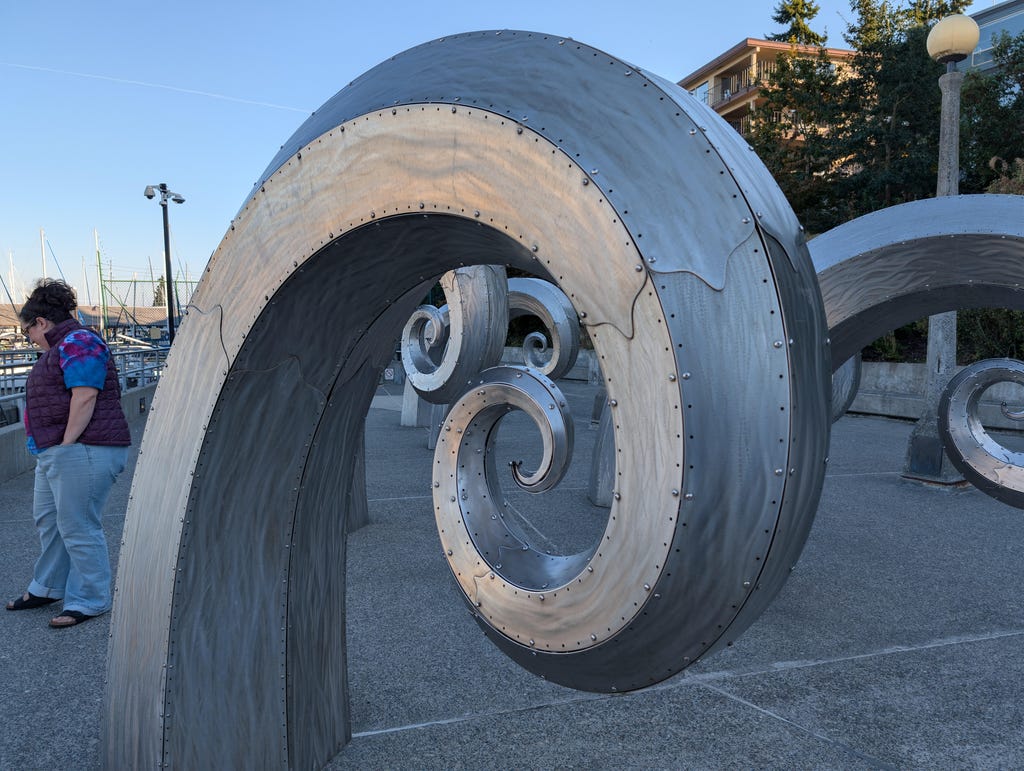 Looking at the sculpture from a few feet back, the iPhone is still obsessed with making everything blue. Even after setting the photographic style to Standard, the sky still looks unnaturally saturated. The Pixel 10 Pro XL, again, nails the color.