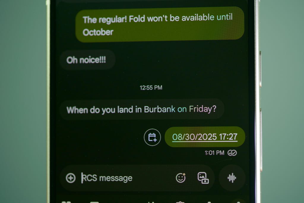 Magic Cue is one of Google's latest AI flexes. It can surface information related to what's on your phone's screen, so you don't have to dig for it yourself. For example, if you're calling your airline, Magic Cue will automatically show your upcoming flight information on the call screen. Or if your friend texts to ask about what time dinner is, those details will appear within Messages without you having to look for them.