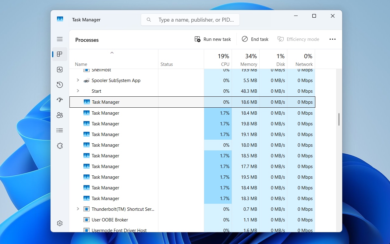 After a recent Windows update, some users (including Windows Latest) noticed that closing the Task Manager window was actually failing to close the app, leaving the executable running in memory. More worryingly, each time you open the Task Manager, it spawns a new process on top of the old one, which you can repeat essentially infinitely (or until your PC buckles under the pressure).