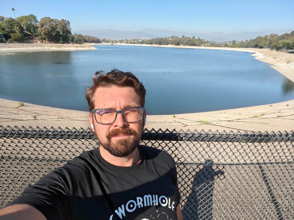 A selfie at the South Lake Reservoir in Los Angeles. David Lumb/CNET