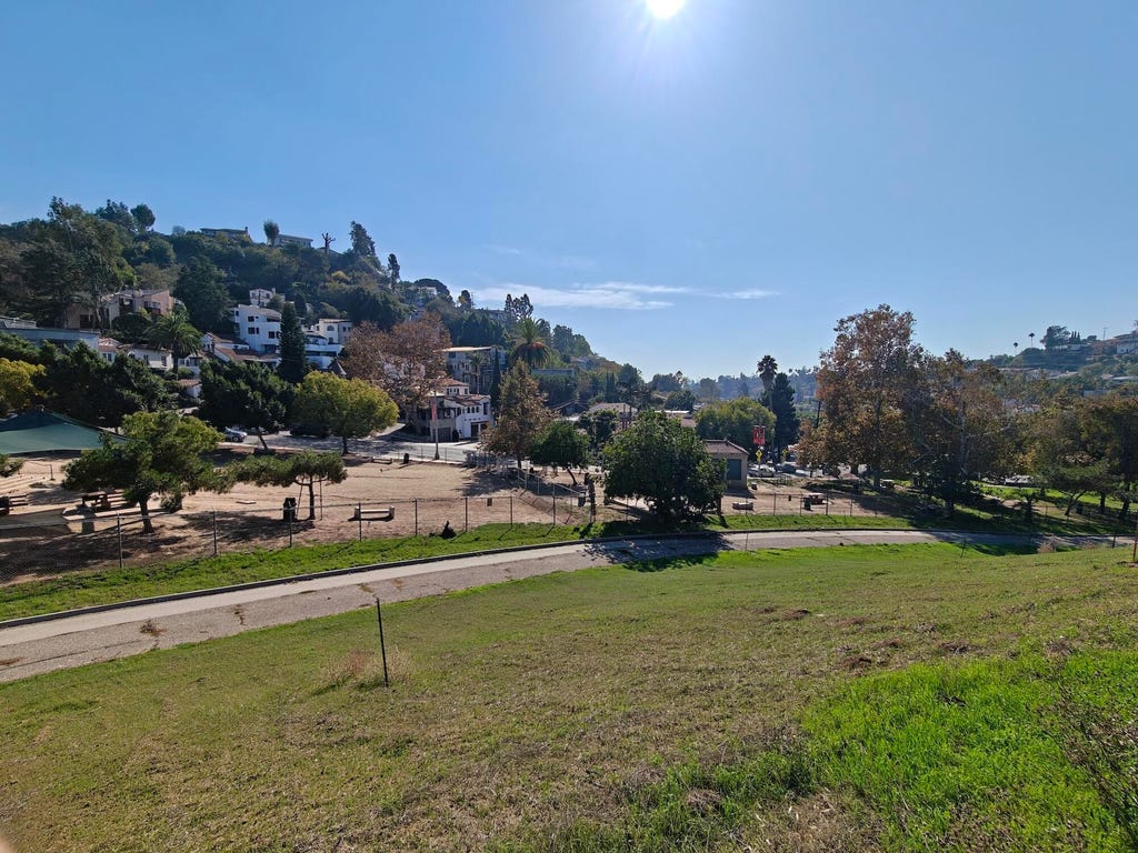 The Silver Lake Reservoir dog park isn't too active during the afternoon of Halloween 2025. David Lumb/CNET