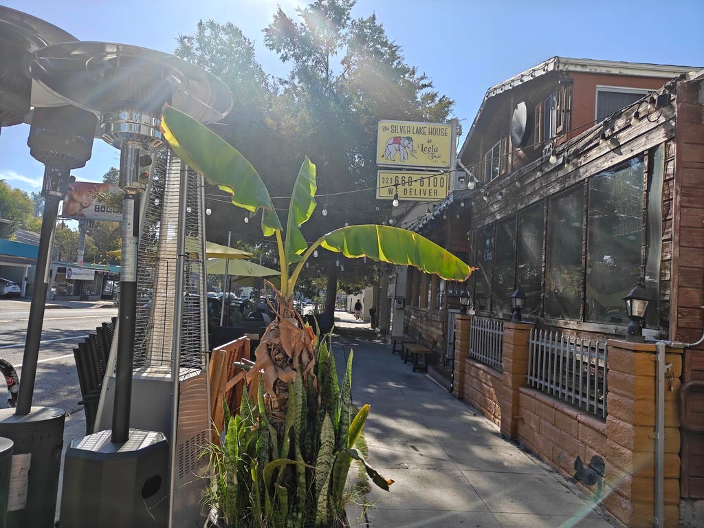 Our first shot is of the outside of The Silver Lake House, a neighborhood Thai restaurant. While I clearly can't resist a slight Dutch angle here, the blend of colors look distinct and not oversaturated -- a win for true-to-life processing. I like the way the OnePlus 15 captured the light and shadows filtering through the trees, and the camera has handled the lens flare well without over-exposing that area. Also, notice the reflection on the chrome on the heat lamp.