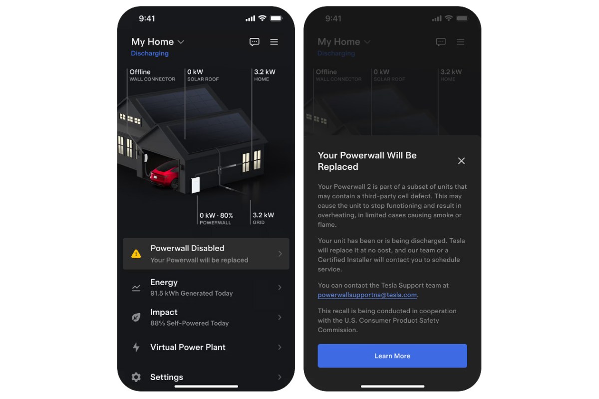 Tesla is removing and replacing all the affected Powerwall 2 units at no additional cost and is notifying customers through its mobile app. The company is prioritizing the replacements and says certified installers “will reach out directly by email or phone” to schedule an installation appointment. Customers with questions are encouraged to contact their original certified installers first, but can also contact Tesla’s support teams directly at 1-877-961-7652 or by email at powerwallsupportna@tesla.com for a faster response.