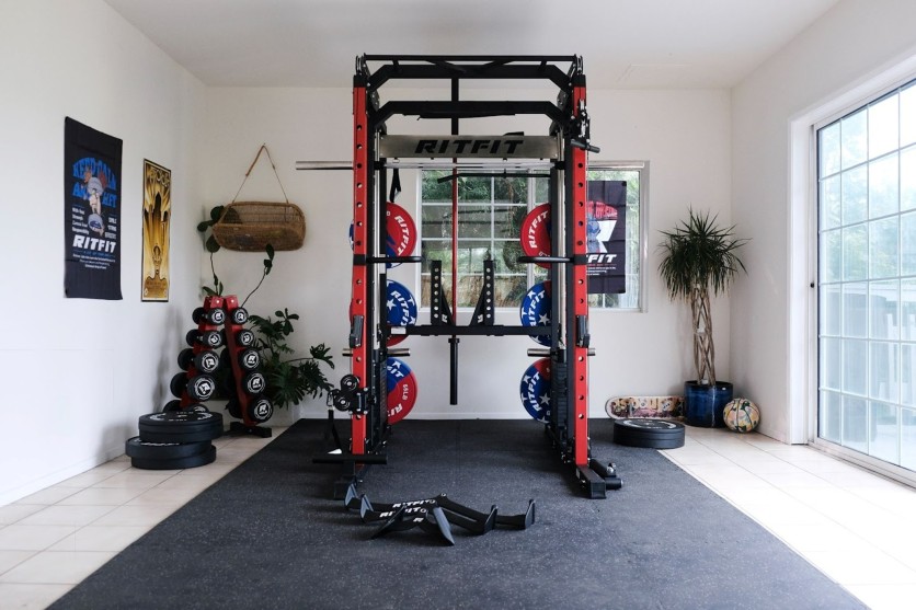 RITFIT built the frame from heavy-gauge steel with a black powder coat finish and red accents. It looks professional without taking up the massive footprint of commercial gym equipment. The 2,000-pound capacity rating covers combined loads across all training modes, not just static weight sitting there.