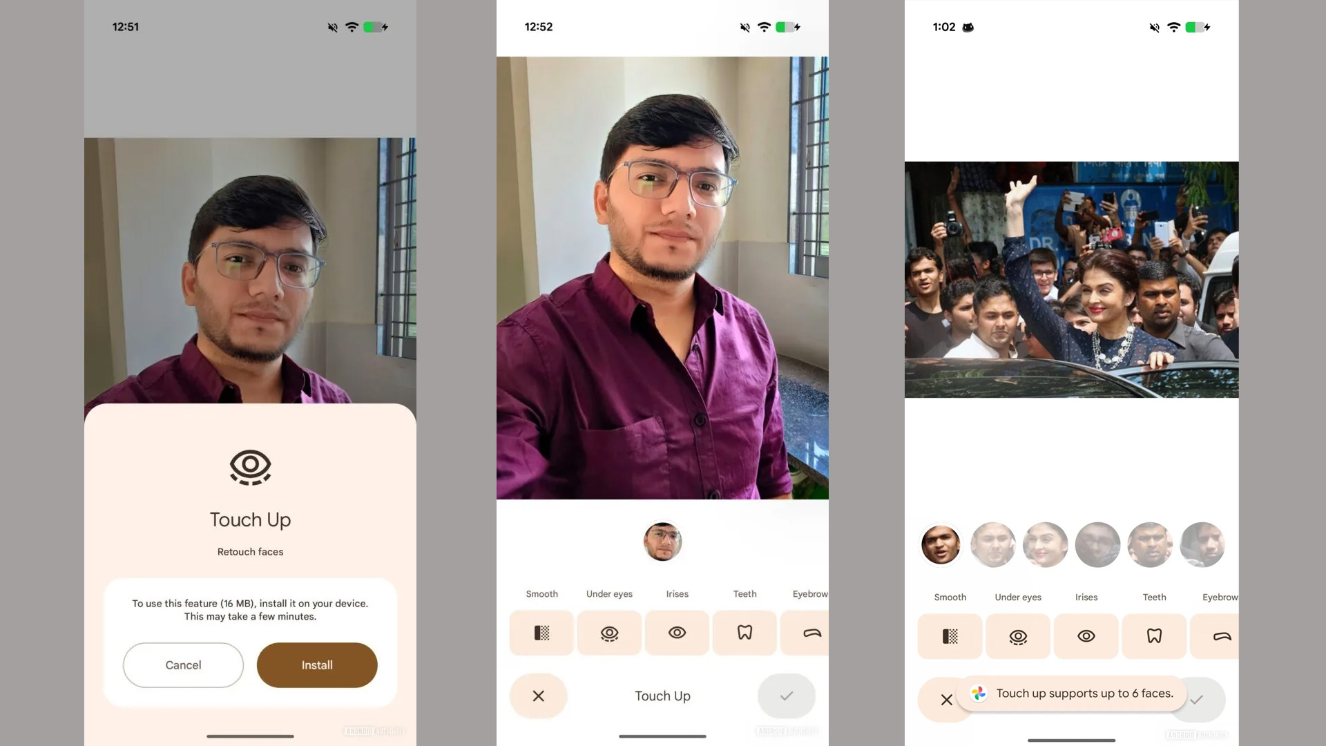 The Touch Up feature will sit in the Actions tab of the edit section in Google Photos and it will offer Smooth, Under Eyes, Irises, Teeth, Eyebrows and Lips. Each will open with a slider, allowing users to make changes, similar to the rest of Google's editing options.