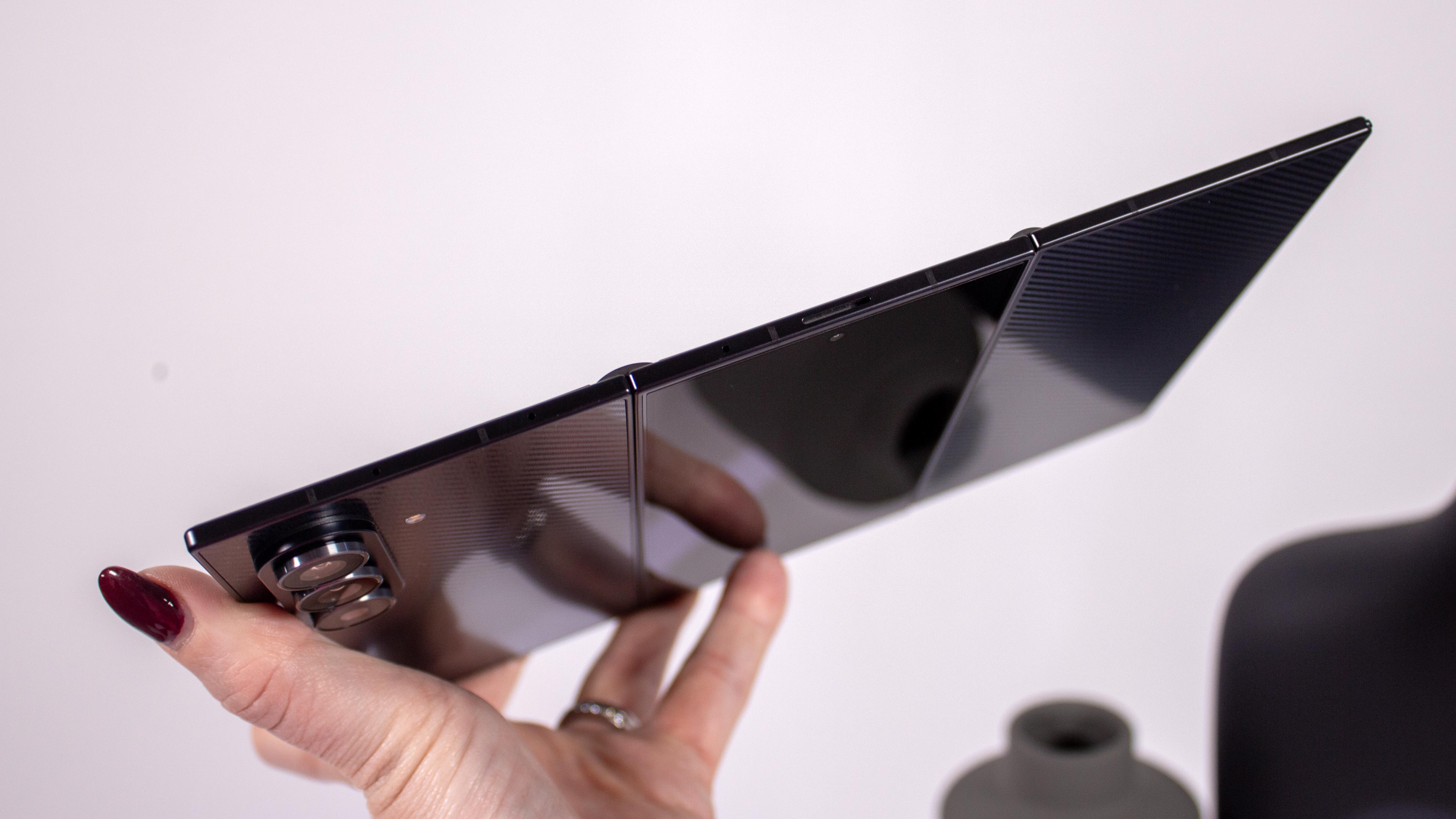 The TriFold’s hinges don't seem to be designed for that middle ground – it’s either a flat tablet or a closed phone, with no secure propped-up position available without an external stand.