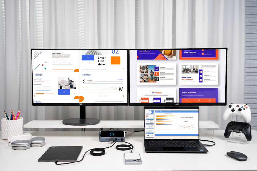 The breakthrough comes from integration. By combining high-wattage GaN charging with a full docking station for laptop capabilities, modern hybrid dual monitor docking stations completely eliminate the need for multiple devices. Now, your laptop docking station can power all your peripherals, including dual monitors, through one streamlined connection.