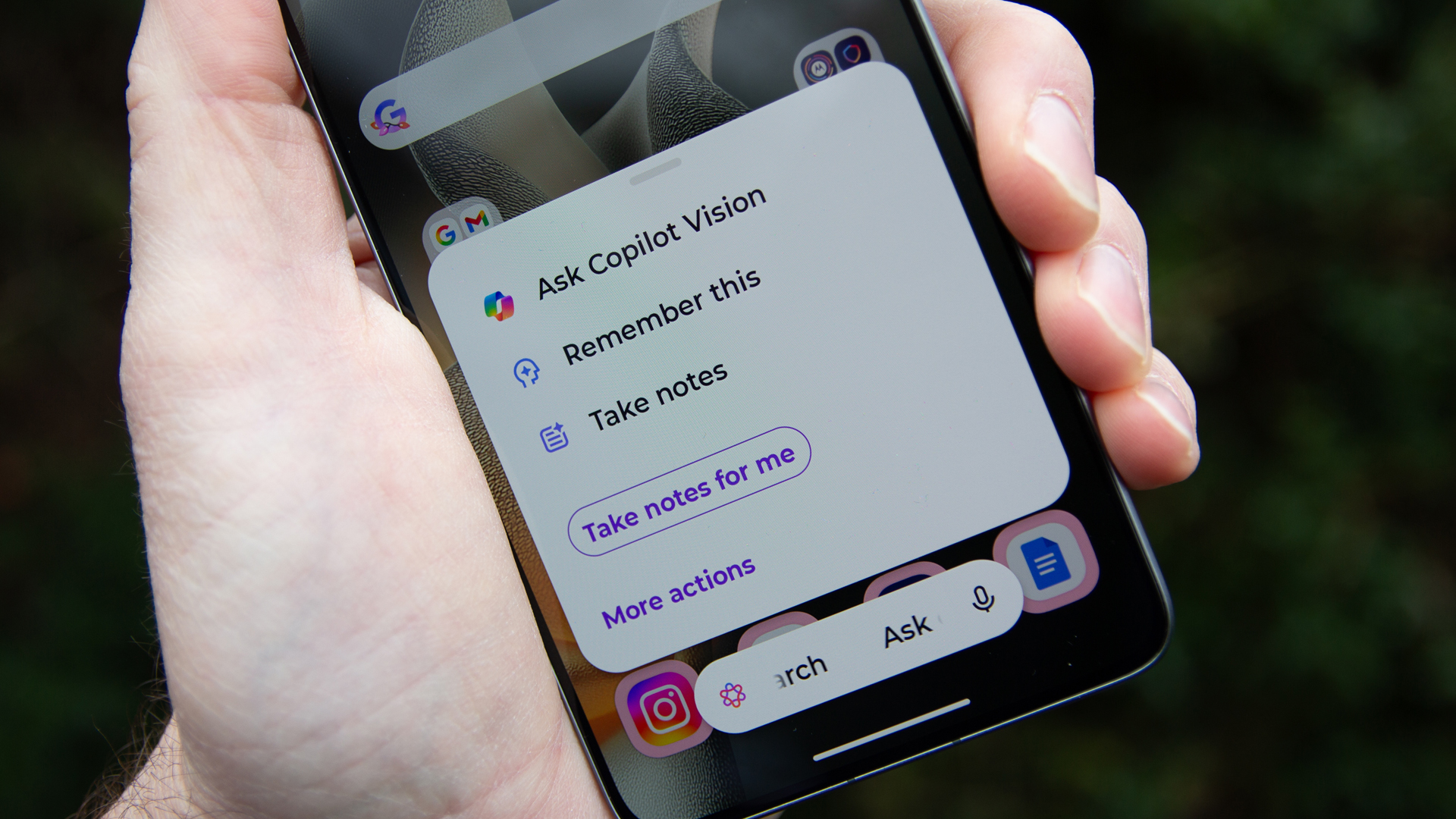 On the side of the phone is an AI button, which is designed to launch into Moto AI (it can be customised, but only for Moto AI functions). You'll need a Moto account to get this to work, but then you'll get options like being able to use Copilot Vision to identify things on screen, or take voice notes and have them transcribed. Moto AI also has the option to "update" you on messages – which works cross-platform with more scope than Google's Gemini.